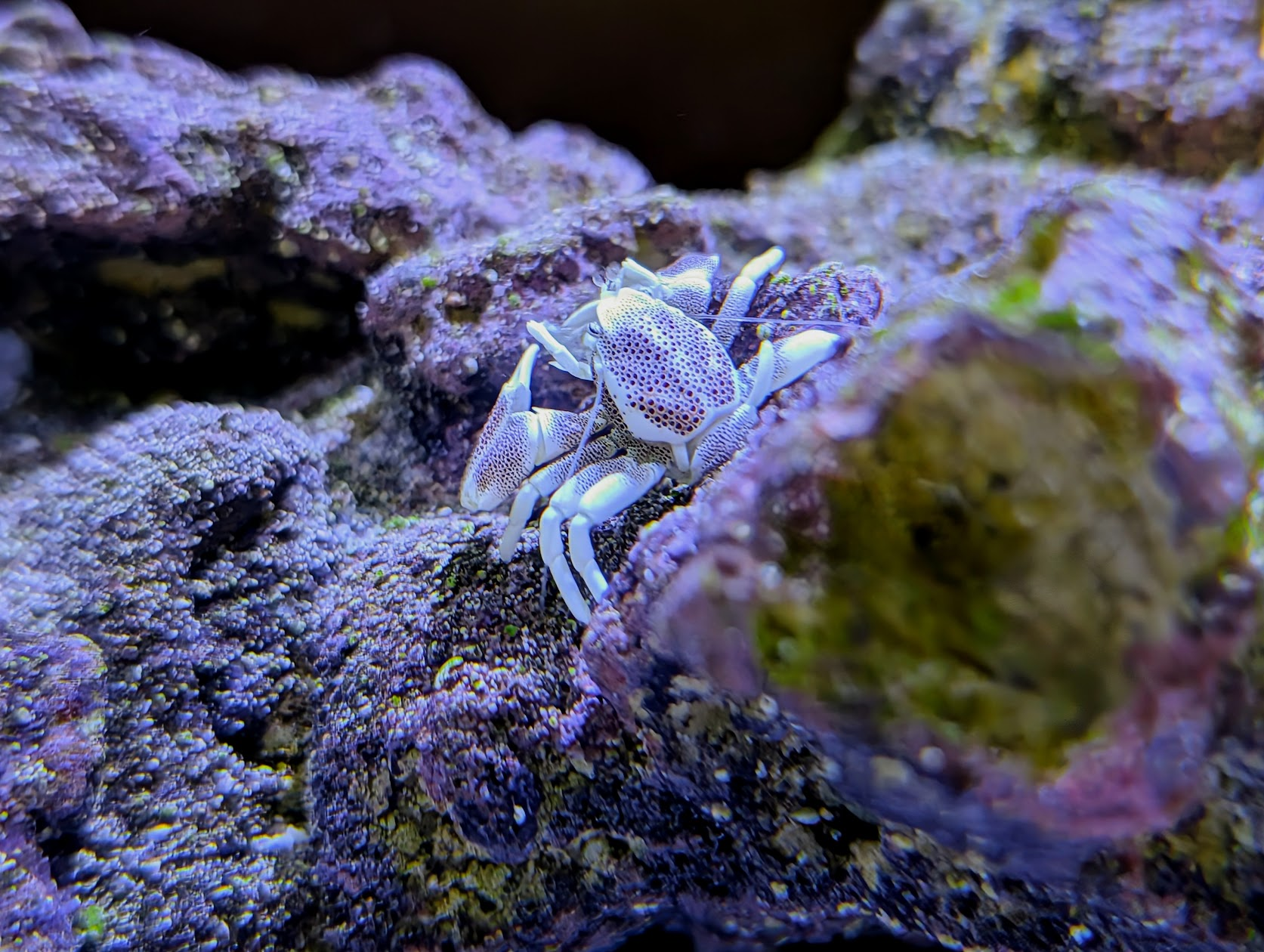 I also found a cute porcelain crab at my LFS, so I had to get him. He’s not shy at all and has just been chilling on a rock all day :)