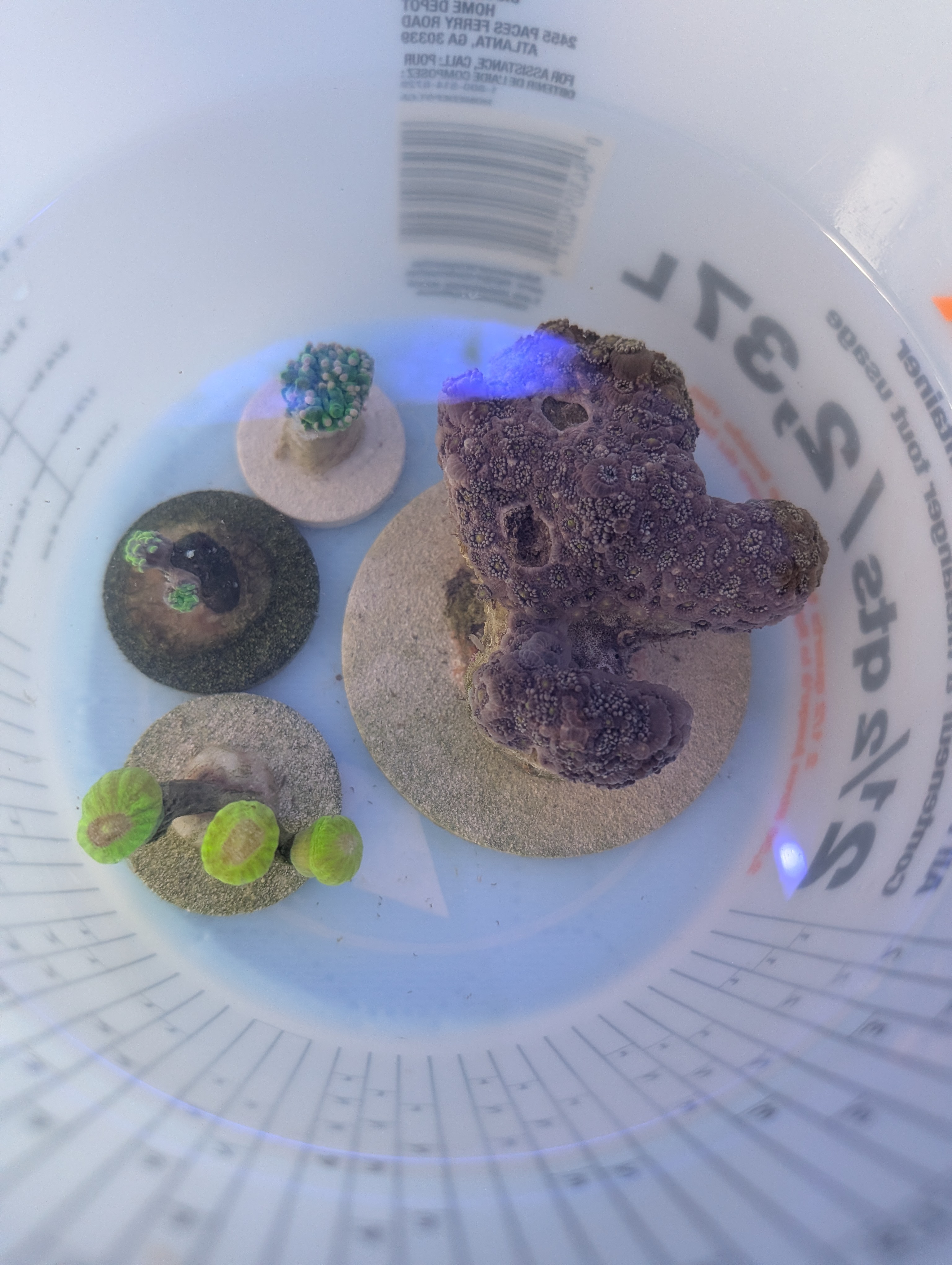 Everything except the abalone (he’s too large for my observation tank to support) is now in my observation tank for a month before moving into my DT.