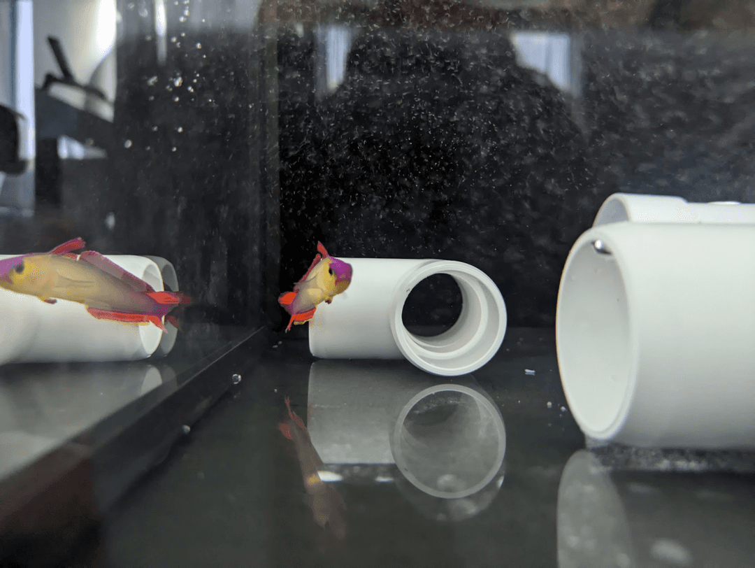, but it really gave me a heart attack the other day! I heard a splash, couldn’t find it in the tank, and eventually noticed its tail sticking out of my light mount bracket. It somehow jumped in and got completely jammed out of the water. I was very lucky to hear the splash and help it, and I've since 3D printed inserts for the gap. Phew!