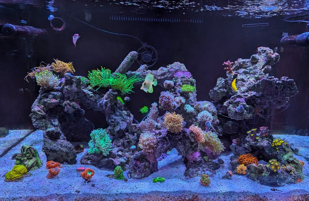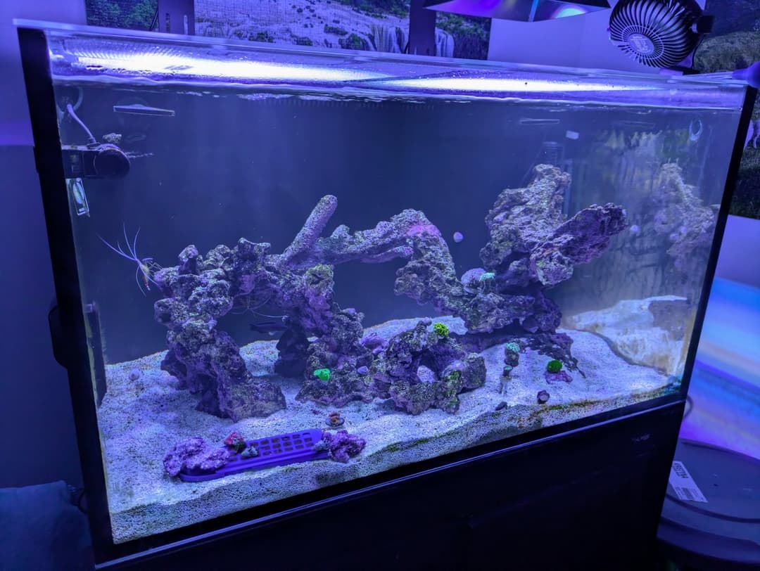 I picked up a hammer, gsp, candy cane, duncan, and some zoas, but I’m keeping it low and letting the tank mature a bit more. I really want to cover everything with hammers, torches, and frogspawns, I love how they move! I also love montis and acros, so it’s hard to decide where to place it all. I’ve moved my two wavemakers around to improve flow after spotting some dead zones, but I'm still figuring out the best setup. There's so much to learn!